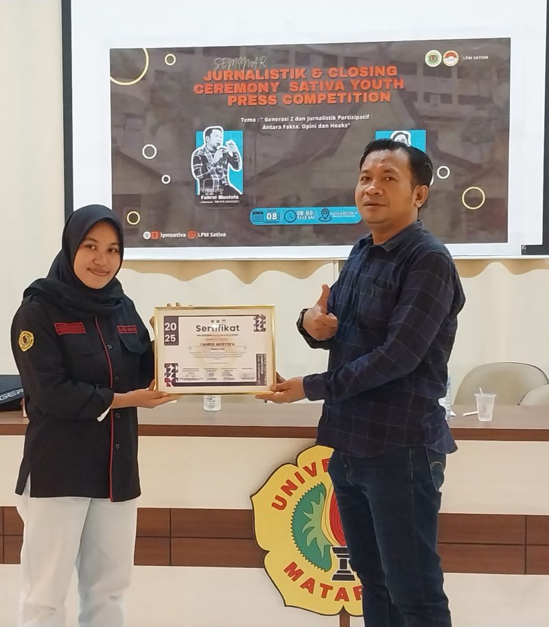 SUMBAWAPOST.com, Mataram-Aula Fakultas Pertanian Universitas Mataram mendadak riuh pada Senin (8/9/2025). Ratusan pelajar SMA/SMK/MA se-Pulau Lombok dan perwakilan BEM fakultas di Unram tumpah ruah mengikuti seminar bertajuk ‘Generasi Z dan Jurnalistik Partisipatif: Antara Fakta, Opini, dan Hoaks’ yang digelar Lembaga Pers Mahasiswa (LPM) Sativa.
