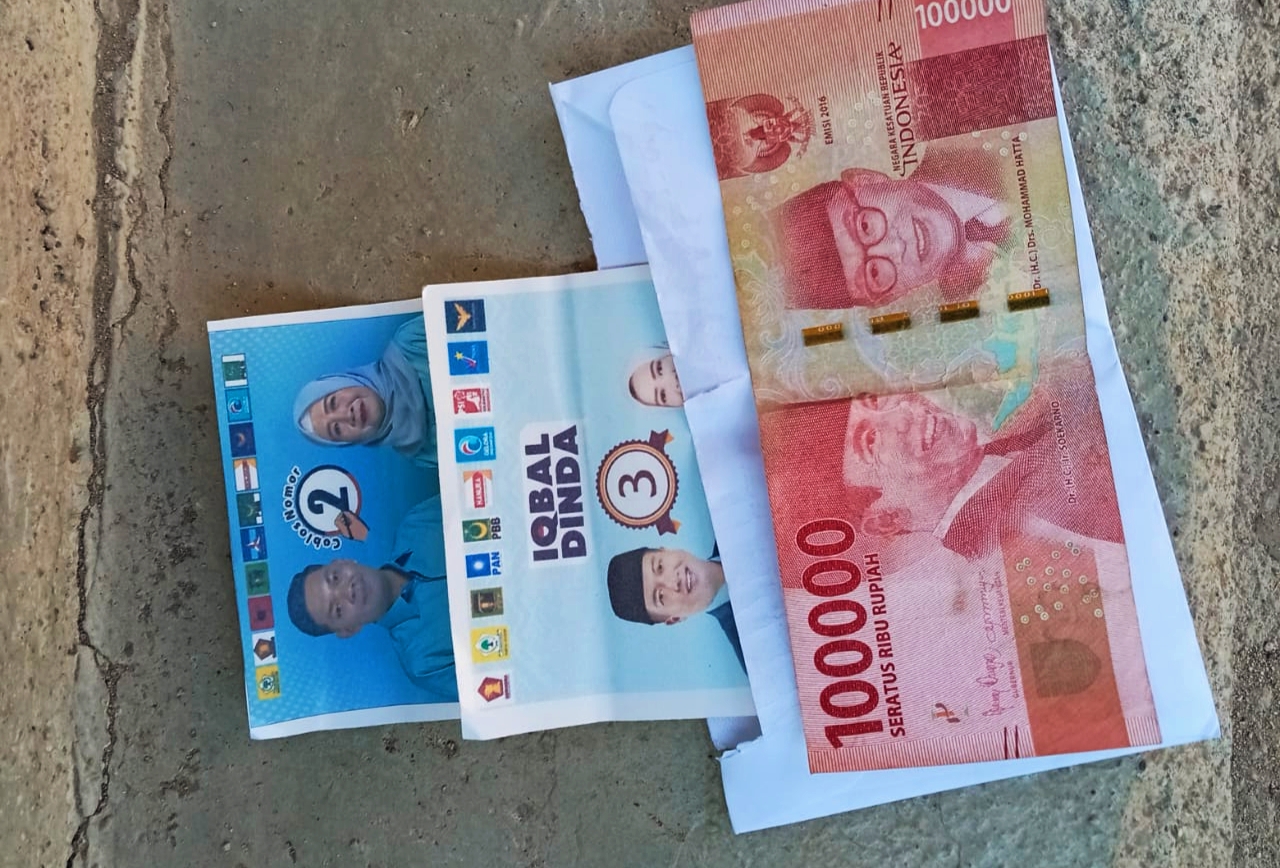 “Untuk dugaan praktek politik uang kita sudah serahkan bukti berupa 2 amplop yang berisi uang masing-masing seratus ribu rupiah dengan pecahan lima puluh ribu rupiah sebanyak empat lembar,” kata Arif.