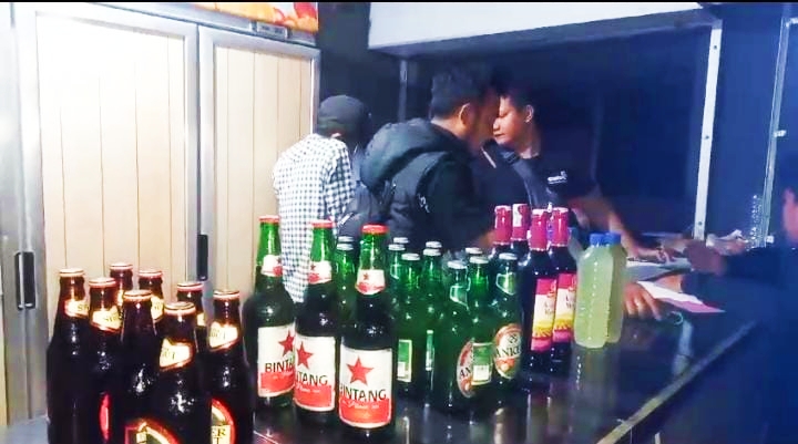 Dari kegiatan tersebut ratusan botol minuman keras tanpa izin penjualan terpaksa diamankan dari beberapa warung / Cafe di wilayah tersebut.