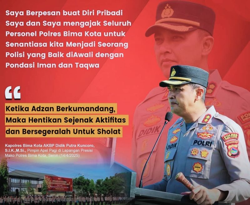 SUMBAWAPOST.com, Kota Bima – Di tengah suasana pagi yang penuh semangat di Lapangan Presisi Mapolres Bima Kota, Senin 14 April 2025, Kapolres Bima Kota, AKBP Didik Putra Kuncoro, S.I.K., M.Si., menyampaikan pesan mendalam kepada seluruh personel saat memimpin apel pagi.