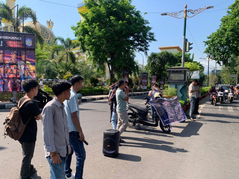 Dalam aksinya, massa memasang spanduk raksasa sepanjang 200 meter yang terbentang mencolok di jalan utama. Mereka menuntut KPK segera menindaklanjuti laporan yang menyeret nama dua anggota DPD RI asal NTB, yakni inisial MRF dan MMF