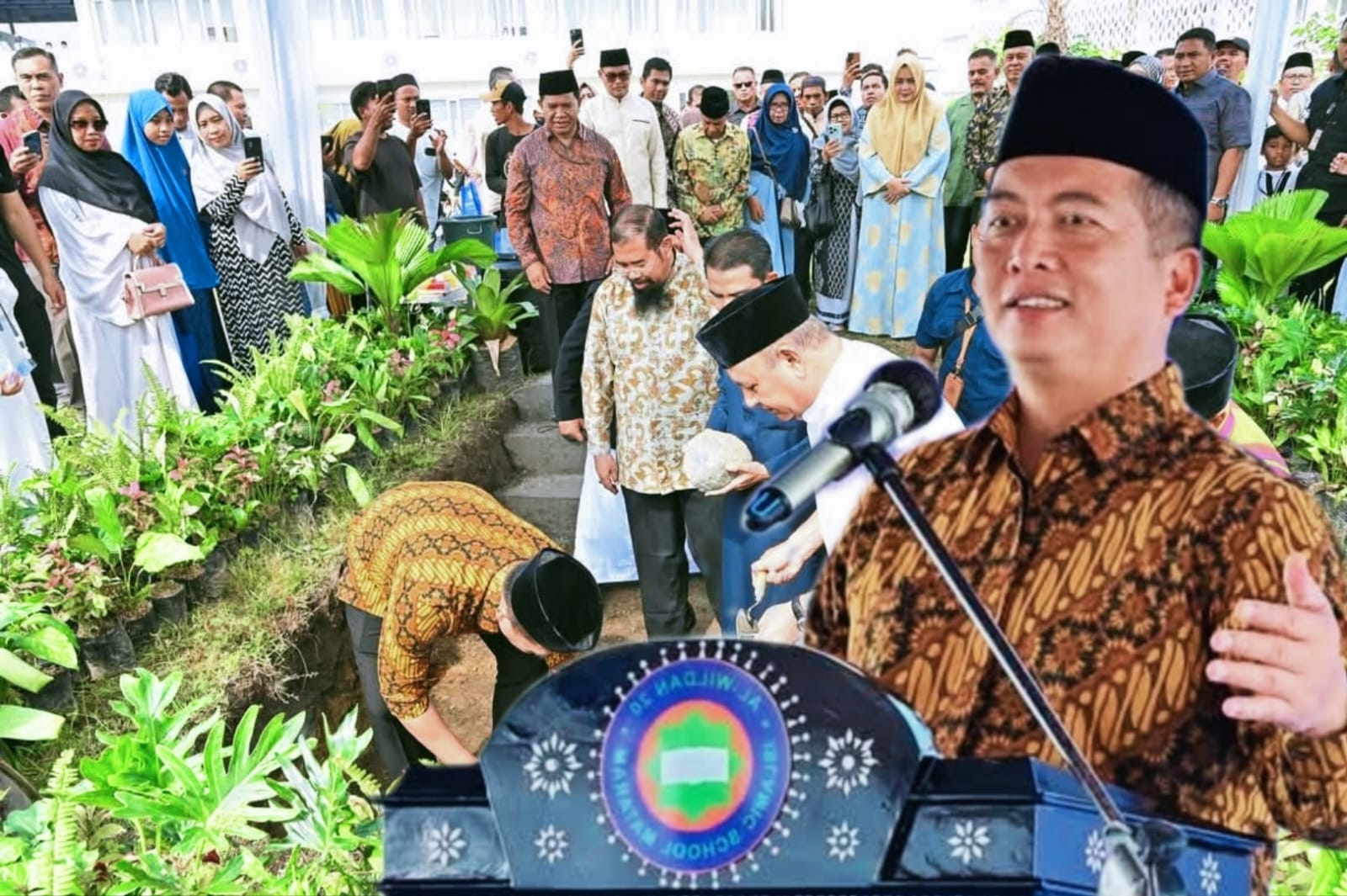 Sementara itu, Presiden Al Wildan Islamic School, Prof. Dr. Abdurrahim Al Basyir, M.Pd., menyampaikan rasa terima kasih atas kehadiran Gubernur dan Wakil Gubernur NTB dalam acara peletakan batu pertama Masjid Al-Amir yang akan menjadi pusat kegiatan ibadah di lingkungan sekolah.