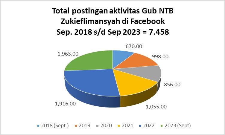 Sejak 2018 sampai dengan tahun 2023 kegiatan Dr. H Zulkieflimansyah yang di posting di Media Sosial facebook mencapai 7000 aktivitas yang terbagi dalam 5 tahun sejak 2018 hingga 2023 (September).