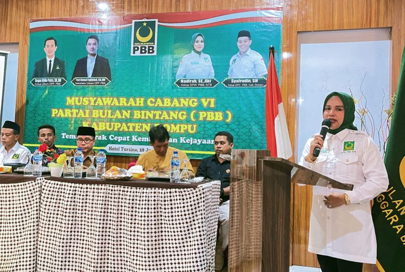SUMBAWAPOST.com, Dompu – Partai Bulan Bintang (PBB) Kabupaten Dompu kembali memanaskan panggung politik Tanah Nggahi Rawi Pahu lewat gelaran Musyawarah Cabang (Muscab) VI yang digelar di Hotel Trusina, Sabtu 28 Juni 2025. Suasana penuh semangat, militansi, dan soliditas partai menyatu dalam ajang penentuan arah masa depan PBB Dompu.