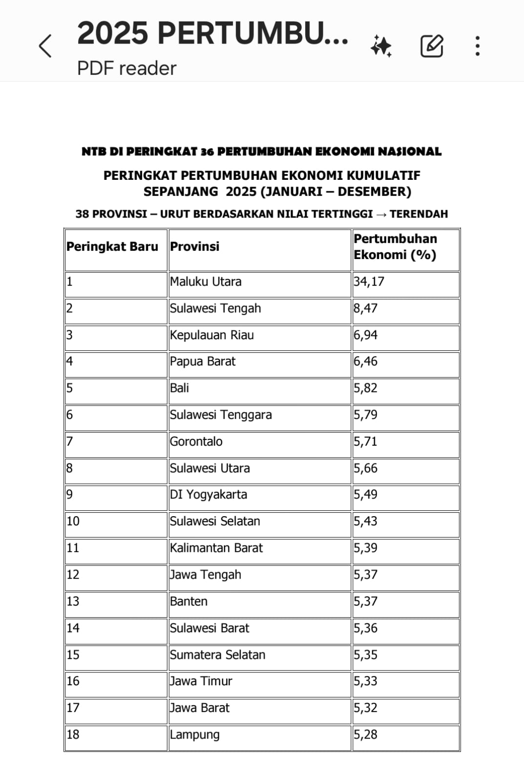 Peringkat ke-36 bukan label permanen, tetapi cukup menjadi alarm. Ia menandakan struktur ekonomi NTB belum sepenuhnya resilien. Tanpa penguatan fondasi, ketertinggalan relatif bisa melebar.