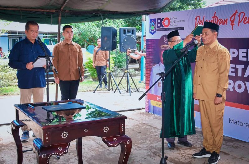 Acara ini dihadiri oleh Wakil Gubernur NTB, Indah Dhamayanti Putri, S.E., M.IP, unsur Forkopimda NTB, serta para kepala perangkat daerah. Pelantikan dilakukan secara sederhana sebagai bentuk solidaritas terhadap warga terdampak banjir.