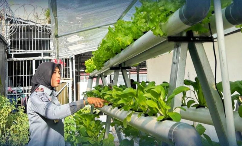 SUMBAWAPOST.com, Mataram- Kepala Lembaga Pemasyarakatan Perempuan Kelas III Mataram bersama pejabat struktural mengecek tanaman hidroponik hasil pembinaan kemandirian Warga Binaan Pemasyarakatan.