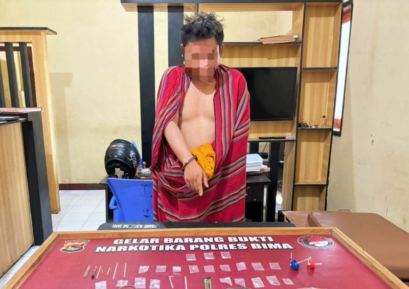 SUMBAWAPOST.com, Bima –Kapolres Bima AKBP Eko Sutomo melalui Kasatreskoba Iptu Fardiansyah SH menjelaskan, Pria asal desa Rabakodo Kecamatan Woha Kabupaten Bima berhasil diringkus satuan Reserse Narkoba Polres Bima Polda NTB. Penangkapan terhadap pria inisial IP (31) setelah petugas menerima informasi masyarakat sekitar yang menyebutkan adanya aktivitas penyalahgunaan narkoba jenis Shabu