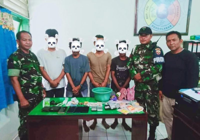 “Para pelaku masing masing berinisial AS, FS, MS dan ZN kami tangkap bersama BB Narkoba dan lainnya sekitar siang hari pukul 12.00 wita” ungkap Dandim
