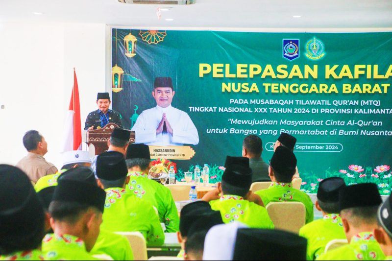 SUMBAWAPost, Mataram – Penjabat (PJ) Gubernur NTB Hassanudin melepas 53 peserta atau kafilah Provinsi NTB untuk mengikuti Musabaqah Tilawatil Qur’an (MTQ) XXX tingkat nasional Tahun 2024 di Kota Samarinda, Provinsi Kalimantan Timur (Kaltim) yang digelar mulai 8 September hingga 16 September.