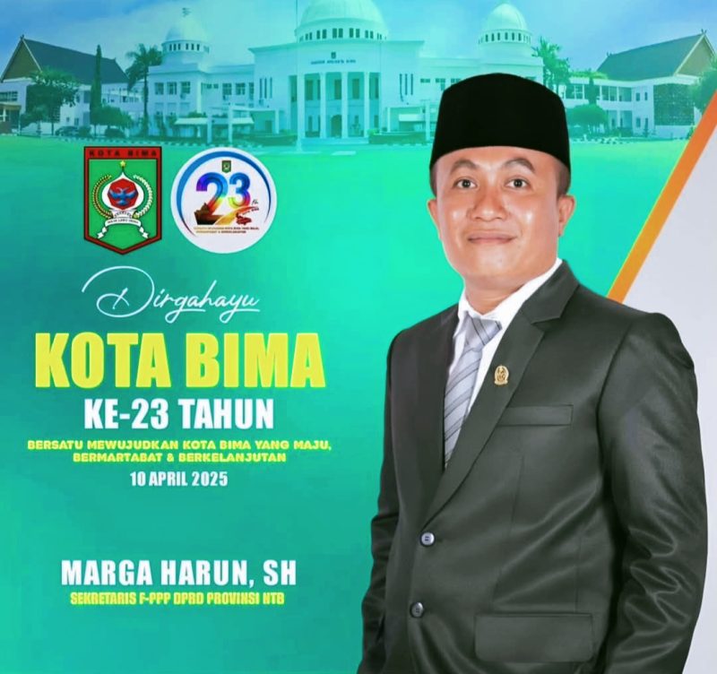 SUMBAWAPOST.com, Bima – Anggota DPRD Provinsi NTB, Marga Harun, menyampaikan ucapan selamat ulang tahun ke-23 untuk Kota Bima. Dalam pernyataannya, Marga Harun Politisi Muda Partai PPP Dapil NTB VI (Bima, Kota Bima dan Dompu) ini menyampaikan harapan agar Kota Bima terus melaju menuju kemajuan di bawah kepemimpinan Wali Kota Bima H A Rahman H Abidin dan Feri Sofiyan sebagai Wakil Wali Kota Bima.
