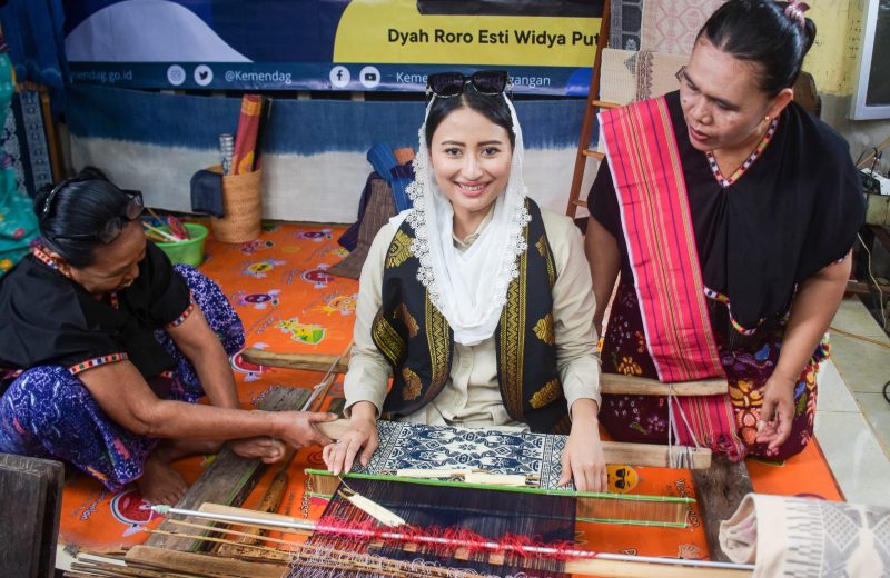 “Harus bisa membaca selera pasar. Jangan monoton, dibutuhkan inovasi dalam membaca tren,” tutur Baiq Nelly saat mendampingi Wakil Menteri Perdagangan RI di Desa Sukarara Lombok Tengah.